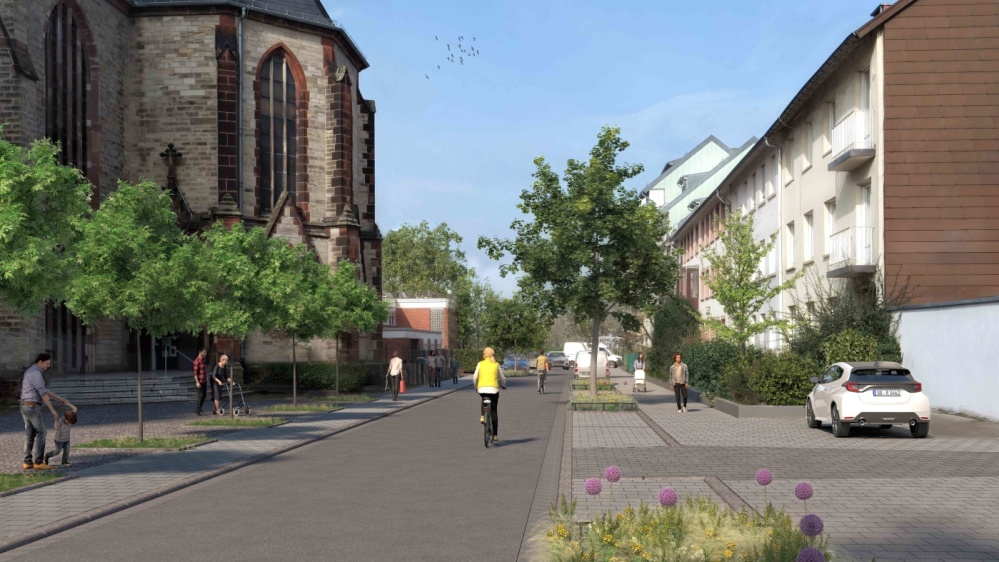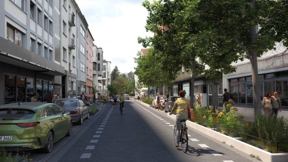 Ziel ist es, sichere und attraktive Wege für den Fuß- und Radverkehr zu schaffen. Durch Bäume und Grünelemente sollt die Aufenthaltsqualität zusätzlich deutlich gesteigert werden. So können Begegnungs-, Aufenthalts- und Kommunikationstreffpunkte im Quartier geschaffen werden, die zu einem lebendigen Miteinander beitragen.