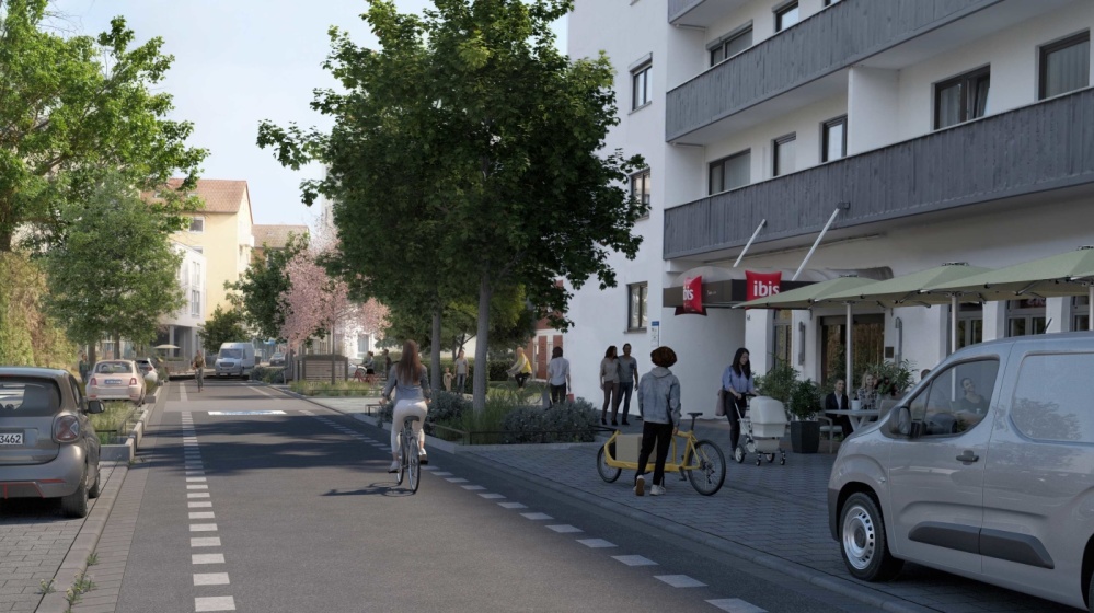 Neugestaltete Begegnungspunkte, mehr Grün im Straßenraum sowie neue Verkehrsführungen sorgen für mehr Aufenthaltsqualität.